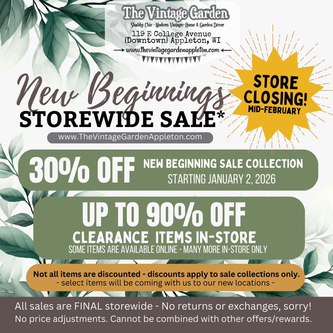 This collection includes NEARLY everything in the store -- décor and gifts at special pricing as we close one chapter and prepare for what’s next.