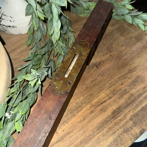Made of wood. Authentic vintage piece complete with nicks, marks and signs of age and wear -- perfectly imperfect. For decor use only, level does not actually work any longer.