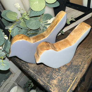 Cute bird cutouts -- perfect to tuck into your decor! Set them alone or as a pair! I would say these birds are grey with blue undertones -- hard to capture their exact color in a photo.