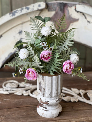 Add a fresh pop of color to your space with this beautiful faux mixed flower bush. Featuring soft pink blooms paired with delicate white accents and layered greenery, this stem brings a gathered garden feel to any vase!