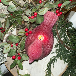 These battery-operated candles are always a favorite! They add that extra ambiance to any setting and look great on a mantel, sideboard, within a table setting... just about anywhere! Add a comforting glow and a touch of meaning to your home with this beautifully detailed cardinal candle. Featuring a lifelike moving flame that flickers gently, this piece brings a peaceful, heartwarming presence to any room. The beautiful red finish and realistic feather texture make it a lovely accent for winter décor — or a thoughtful gift symbolizing love and remembrance.