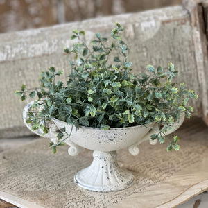 Cute topper for a vase or candle stick -- or mix in a bowl with other toppers and orbs! Rioting scalloped tonal leaves with light white accents add an organic feel to your displays with its vining look.  Easily pairs with other decor and spans seasons with its versatility.