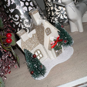 Add a touch of holiday magic to your tree or winter display with these enchanting lighted sugar houses. Each miniature house sparkles with glittery rooftops, frosted trees, and glowing windows that bring a cozy winter village feel to your décor.