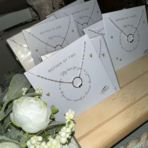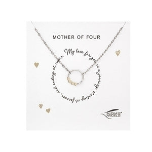 Give your mother a necklace she'll treasure - or purchase one for yourself - this beautiful piece features a delicate silver circle complete with golden hearts to represent her children! It's a beautifully designed way to let her know how much you all cherish your bond.