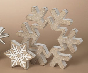 This fun set of snowflakes is sure to elevate any mantel, shelf, or tray setting. A lightly glittered finish only adds to the allure of this pretty duo!