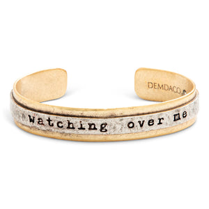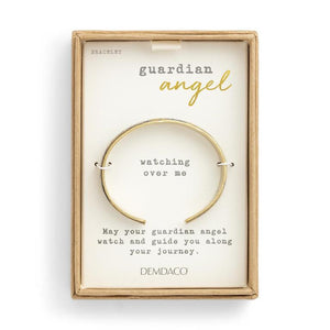 Featuring a sleek gold-toned cuff design engraved with the words “watching over me,” this bracelet serves as a heartfelt reminder that you are never alone on your journey. Presented in a gift-ready box with the message, “May your guardian angel watch and guide you along your journey,” it makes a meaningful keepsake for yourself or a thoughtful gift for someone special.
