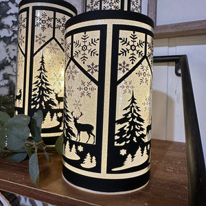 Create a warm and magical glow in your home with this elegant Winter deer luminary! Featuring a beautifully crafted silhouette of graceful deer set against a serene winter scene, this luminary is perfect for adding a cozy ambiance to your holiday decor. With its safe and soft lighting, this battery-powered luminary is ideal for illuminating any space with the peaceful spirit of winter. They have an attached light strand, with a timer -- so you can set them and simply enjoy them for the season!