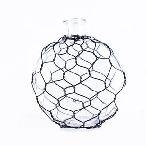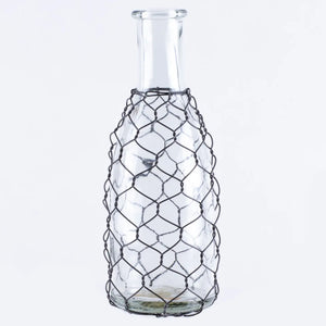 Add vintage-inspired charm to your décor with these clear glass bottles wrapped in rustic black wire mesh. Perfect for displaying fresh greenery, dried stems, or simple seasonal accents, each piece brings a touch of farmhouse warmth and texture to your home.