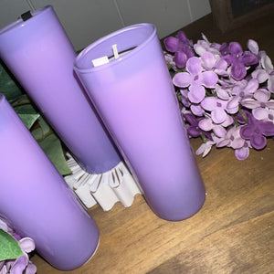 Size: 2oz Soy Votive Candle will burn for approximately 20 hours. Lavender or Clear glass votive: 4" tall x 1.5" wide.
