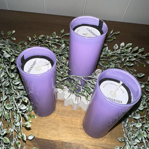 Size: 2oz Soy Votive Candle will burn for approximately 20 hours. Glass votive: 4" tall x 1.5" wide. *This one comes in a purple glass votive.