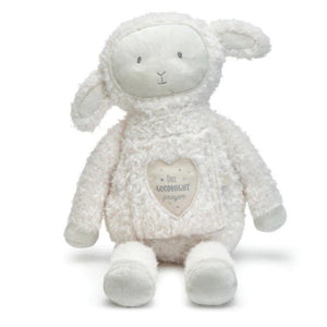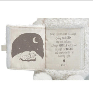 Sweet dreams start with small blessings! Each comes with an embroidered sentiment that make prayer a part of baby’s nightly routine. With soothing colors and soft fabrics, this plush lamb creates cozy bed time experiences for little ones. This squeezable stuffed plush white lamb toy with story flap comes with a soft and cuddly blanket for baby with a prayer message. A coordinated soft lamb features a message in a heart shape encouraging them to open belly flap to read the full prayer. Sentiment: "Our Goodnight Prayer. Now I lay me down to sleep. I pray the Lord my soul to keep. May angels watch me through the night and wake me in the morning light. Amen."