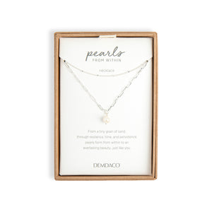 Pearls are a unique natural beauty that form over time from just a single grain of sand. With a little patience and perseverance, that small grain becomes something new and inspiring. The Pearls From Within Necklace - Silver is meant to be worn as a reminder of strength and transformation through life's roughest waters.