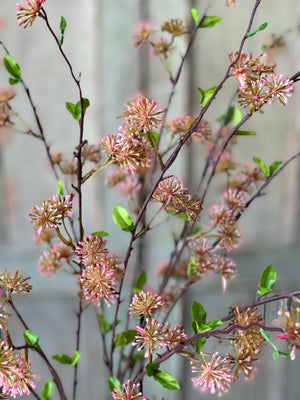 Lengthy branching stems are punctuated with unique bursting blooms that resemble fireworks and dotted with pairs of green leaves.  This collection of florals will definitely garner attention!