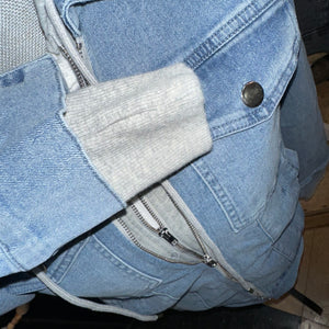 Effortlessly cute and endlessly versatile, this denim jacket features a built-in layered hoodie design for that perfect casual vibe. Both the light-wash denim and black wash pair with a soft grey zip-up insert and drawstring hood, giving you the look of two pieces in one easy throw-on style. Finished with button-front chest pockets, cuffed sleeves, thumb holes, and a relaxed fit, it’s the ultimate blend of comfort and trend. Denim has a soft feel with lots of stretch! The grey insert hits just to the wrists and font panels so it's not too bulky! I love this one!
