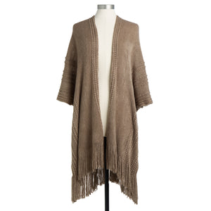 This cocoa women’s knit shawl is beautiful and easy to wear. With fringe and a longer fit, this soft knit duster is sure to accessorize any outfit wonderfully. A great gift option for any lucky lady. Super soft -- cute for out on the town or snuggling up in the house!