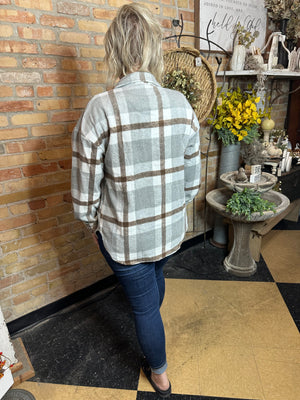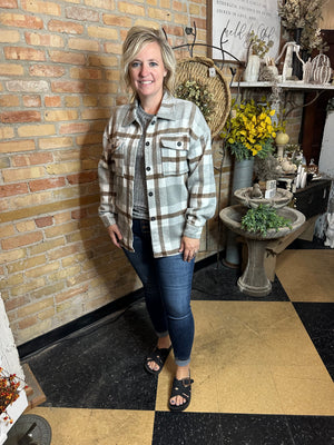 Stay cozy while keeping your look effortlessly chic with our plaid flannel. Designed in a warm taupe, cream, and grey plaid, this versatile layer brings the perfect mix of casual comfort and timeless style.