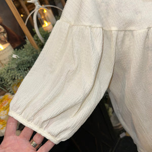 Stay effortlessly cool with this button-up blouse! Designed with a lightweight, crinkled fabric, this shirt features a relaxed silhouette, short sleeves, and a button-front closure. Perfect for layering over tanks or pairing with denim for a casual-chic look, it offers breezy comfort and versatile styling for sunny days or laid-back weekends.