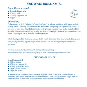 Brownie Bread Mix, chocolatey goodness, indulgence, soft texture, brownies in a slice. Introducing our delicious Brownie Bread Mix! Indulge in the chocolatey goodness and soft texture of our brownie bread. Each slice is packed with the rich, decadent flavor of brownies. Enjoy a delightful treat with our Brownie Bread Mix.