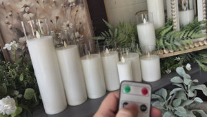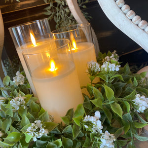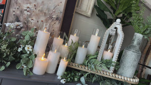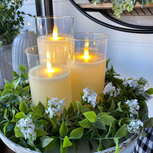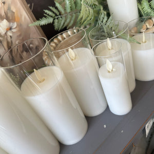 These battery-operated, moving flame candles are always a favorite! This one comes complete, poured into a glass 'vase'. Perfect for the variety of cloches, trays and candle sticks we have available! *Also available in other colors.