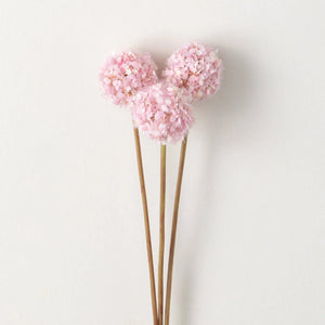 Bring a modern, stylish flair to your next design with a beautiful allium stem. This versatile flower can be used to enhance any space with its delicate texture and cheerful ball-shaped blooms. These spring flowers are perfect for adding a touch of elegance to any room or special occasion. Available in pink, white or purple -- sold as a SINGLE stem.