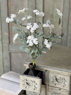 Bring effortless elegance to your home with this delicate faux white daisy spray. Featuring petite layered blooms paired with soft eucalyptus-style greenery, this stem adds texture, height, and a light airy feel to any arrangement.