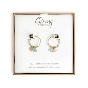 Share love and encouragement with the Giving Earrings. These gold-tone hoops are adorned with delicate silver and gold heart charms, symbolizing moments when the wearer is being thought of and loved.