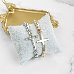 Bracelets are made to fit most wrists. 1.75" Cross pendant.