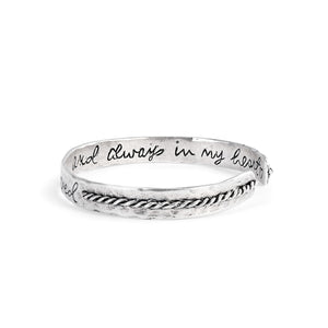 Honor the memory of a loved one with this touching Forever Loved Memorial Bracelet. Crafted in a timeless silver-tone design, the bracelet is engraved with the heartfelt words “Forever Loved” as a lasting tribute.