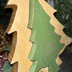This tree is made of wood -- comes with two pieces -- each piece is unique so there WILL be variations in distressing, wood patterns, knots, dings and dents... all adding to the uniqueness of the piece.