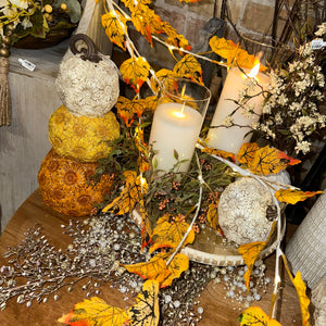 This beautiful fall leaves garland will be the focal point of your autumn setting! Branches have micro-LED lights and autumn leaves.