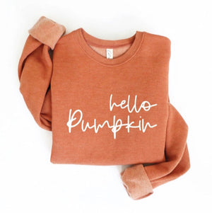 Celebrate the cozy vibes of fall with this “Hello Pumpkin” sweatshirt in a warm pumpkin spice hue. Featuring playful white script lettering on a soft, mid-weight fabric, this sweatshirt is perfect for crisp autumn days, pumpkin patch visits, and all things fall.