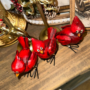 Brighten your home with the timeless beauty of these cheerful red cardinal figurines. Crafted with a hand-carved look and painted in a rich, glossy red finish, each bird brings warmth and a touch of whimsy to your seasonal décor.