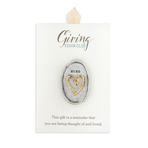 Keep love and encouragement close wherever the road takes you with the Giving Visor Clip. This silver-tone clip features a golden heart design and the inscription “XOXO” as a daily reminder that you are being thought of and loved.