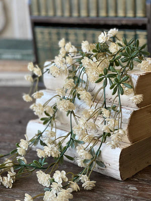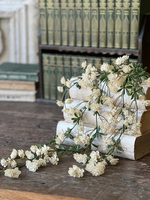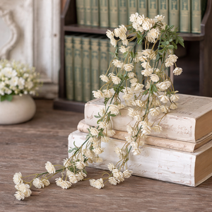 Add a touch of soft, cascading beauty to your home with this delicate cream hanging flower vine. Featuring petite layered blooms and subtle greenery, this piece brings effortless movement and vintage-inspired charm to any space.