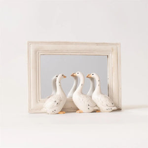 Add a soft, timeless touch to your shelves, entry table, or mantel with this charming distressed tabletop mirror. Framed in a creamy, antique-inspired finish with subtle chippy details, this piece brings vintage character and cozy farmhouse warmth to any space.