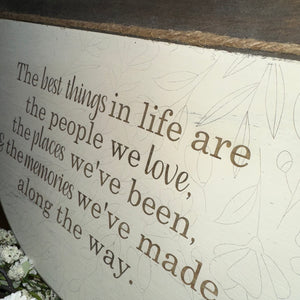 People, places and memories fill our lives with joy. Handmade-- this beautiful sign is engraved wood for a truly one of a kind piece!