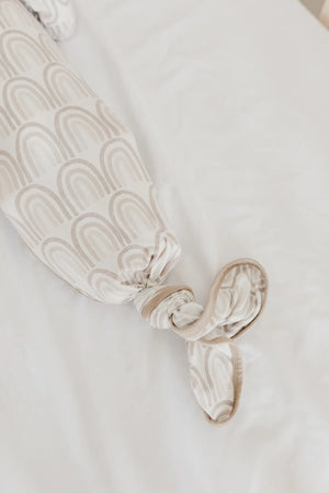 Knot your average baby gown. Made with the same premium knit fabric as our beloved swaddles, this soft and stretchy gown ties at the bottom for easy diaper changes and room to grow. Available in your favorite Copper Pearl prints, it features unique snaps to make dressing a breeze, along with fold-over hand mitts to prevent scratching. Sure to be baby's favorite outfit!