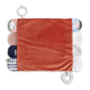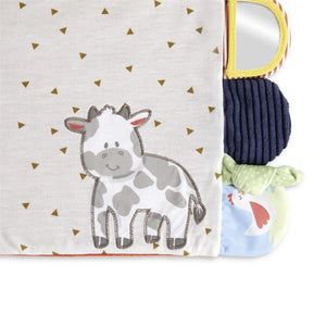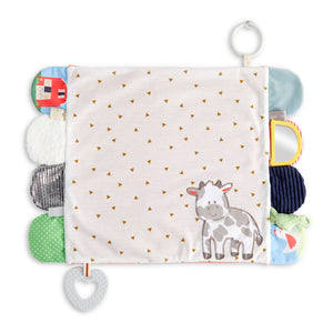 Keep little ones cozy, comforted, and entertained with this adorable Cow Activity Blanket. Made with soft, baby-friendly fabrics and decorated with a cheerful cow design, this blanket features a variety of interactive elements to encourage play and discovery. Textured tabs, crinkle fabrics, and colorful accents stimulate sensory development, while the attached heart-shaped teether provides soothing relief for teething gums. Lightweight and portable, it’s perfect for at-home snuggles or on-the-go play.