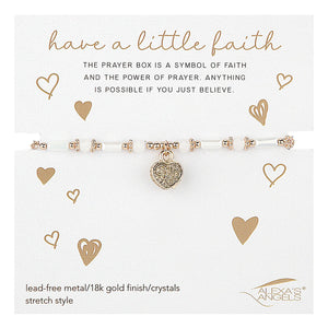 The "Have a Little Faith" Bracelet features a heart-shaped prayer box charm‚ a sweet and meaningful symbol of faith and the quiet power of prayer. A beautiful reminder that hope and belief are always close at hand.