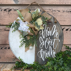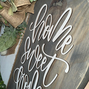 Thank you for taking a look at our handmade signs! Each sign is unique, complete with a laser wood cut inspirational sentiment! Perfect to adorn your home or give as a special gift! This one is complete with a beautiful greens and faux floral addition! The "home sweet home" is cut from thin wood and attached.