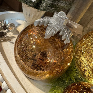 Best Sellers!! Illuminate your holiday season with the enchanting beauty of these lighted crackled glass ornament sitters. Crafted from stunning crackled glass, these sitting ornaments feature a unique texture that captures and reflects light beautifully, creating a mesmerizing glow.One of my favorites! I love these tucked in with greens and other ornaments in one of our tray settings! Such a fun statement piece for the holidays!