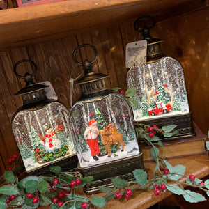 Spinning water globes are always a customer favorite! They are battery operated, light up and spin glitter -- such a fun addition to your winter décor! They have a built-in 6 hour timer so they will come on at the same time each day for you!