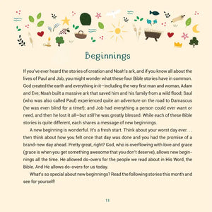 Each section includes 4 colorfully illustrated Bible stories that reinforce the monthly theme and show kids how God worked in the lives of Bible men and women--and how He works in the lives of people today! A fun bonus section at the end of the book features a list of yearly calendar celebrations with dates and brief explanations.